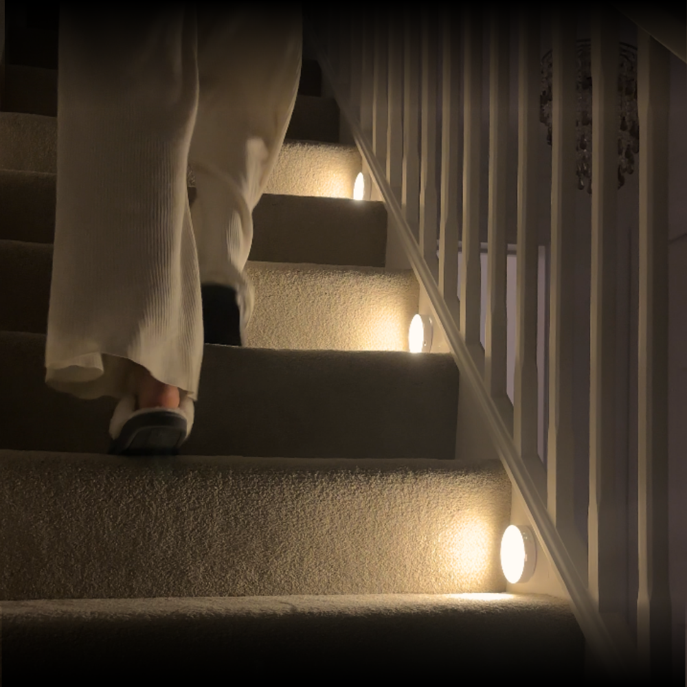 Whether it's a midnight trip to the bathroom, a dark staircase, or getting dressed before anyone else is up — Sensa lights your way automatically, without a sound